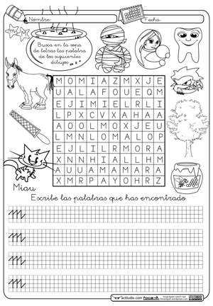 “Caligrafía y autodictado en cuadrícula y una sola ficha”